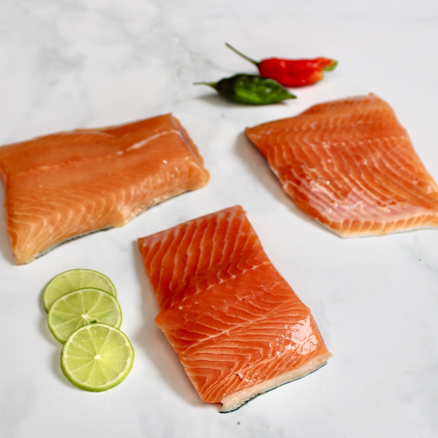 Filetes de salmón 160 g c/u. Con una textura muy suave, perfectos para sashimi, a la parrilla, al horno o con nuestra mantequilla batayaki.